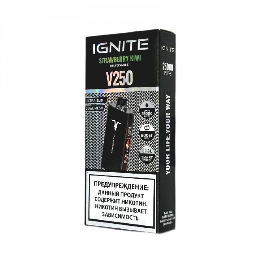 Электронная сигарета Ignite V250 Black 25000 - Strawberry Kiwi (Клубника киви) - купить в Ярцево