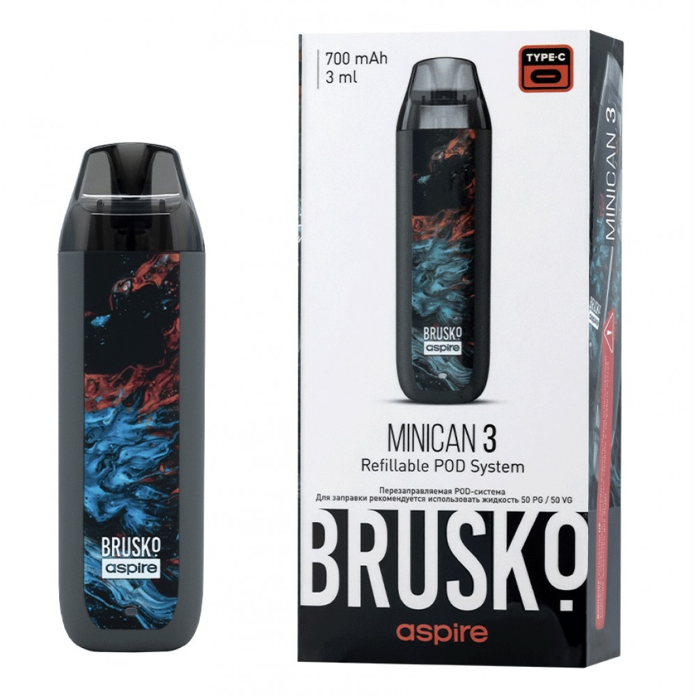 Перезаправляемая Под-Система Бруско Миникан 3 (Brusko Minican 3) 700 mah, Серый Флюид - купить в Ярцево